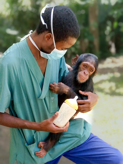 After primary school, Ernest moved to the town of Kaziba to stay with his paternal uncle. He did not see his parents for the 6 years of high school. He recalls helping the veterinarian who came out to see the animals that his uncle raised. When he finally returned home, the few animals that were left were sold to enable Ernest to attend university. Dr. Kalalize graduated from the faculty of veterinary medicine at l’Université du Cinquantenaire de Lwiro in 2019. Throughout his veterinary training, he developed an interest in wildlife. The university was close to Kahuzi-Biega National Park and the Lwiro Primates Rehabilitation Centre, where he would eventually work as an assistant veterinarian.